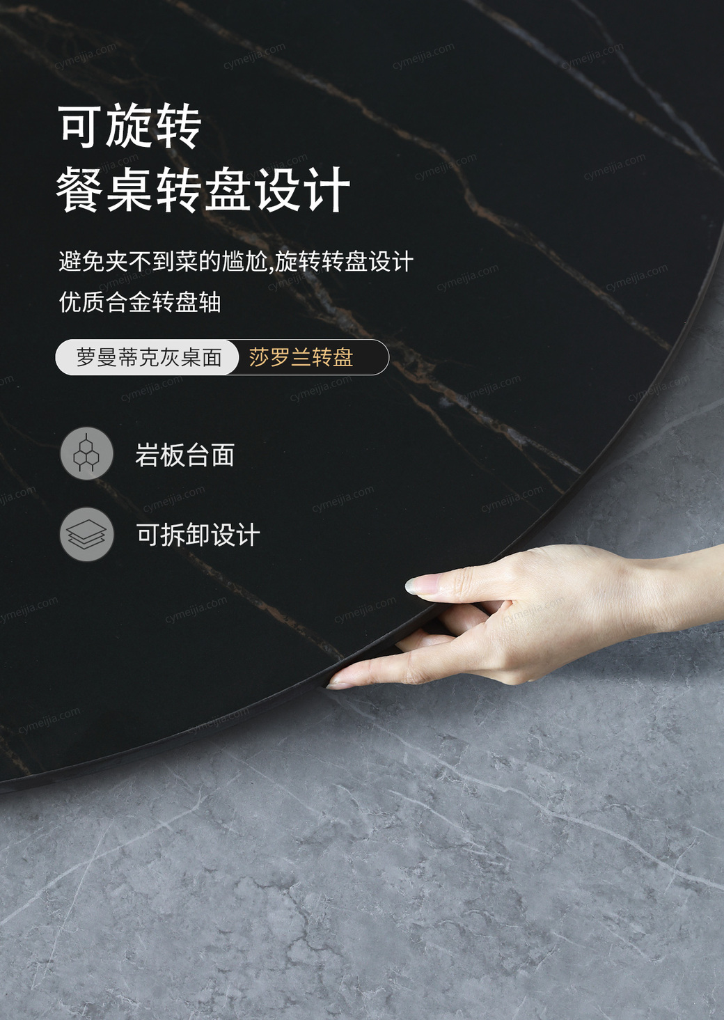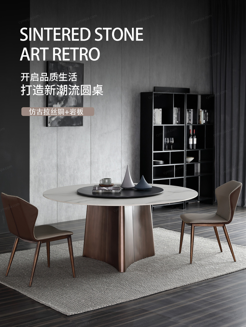 | 产地 : 佛山 | 规格 : 直径1350*高800mm(转盘直径800mm) | 产品材质 : 碳素钢架拉丝古铜色+维克灰哑光岩板面 | 更多参数>> |