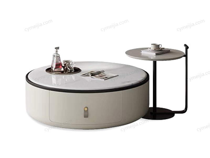 | 产品材质 : | 大圆:彩晶石台面+实木抽屉;小圆:白灰色木面+碳素钢脚 |