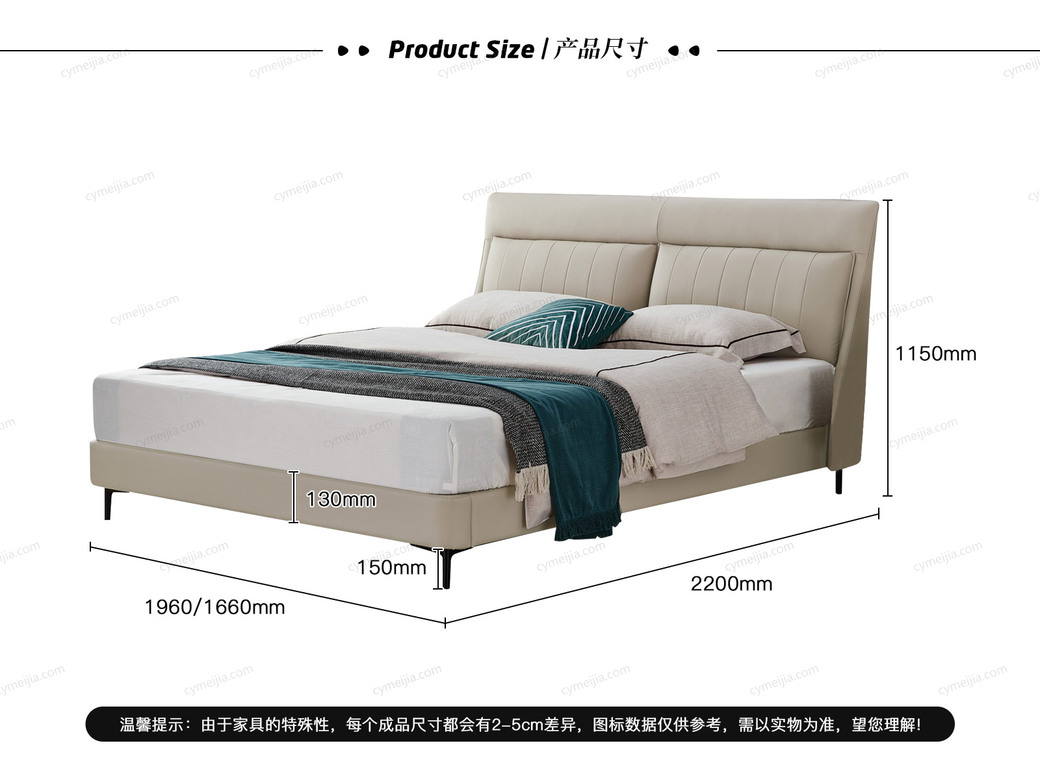 | 适配床垫 : | 长2000*宽1500*高220mm |