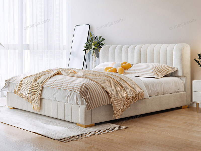 | 产品材质 : | 磨砂布+高回弹海绵+松木方+实木多层板+10公分松木排骨架+电镀金色脚 |