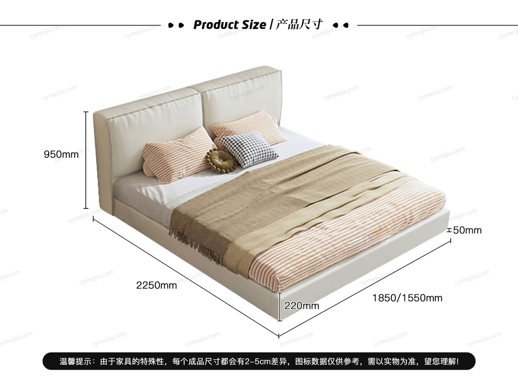 | 适配床垫 : | 长2000*宽1500*高220mm |