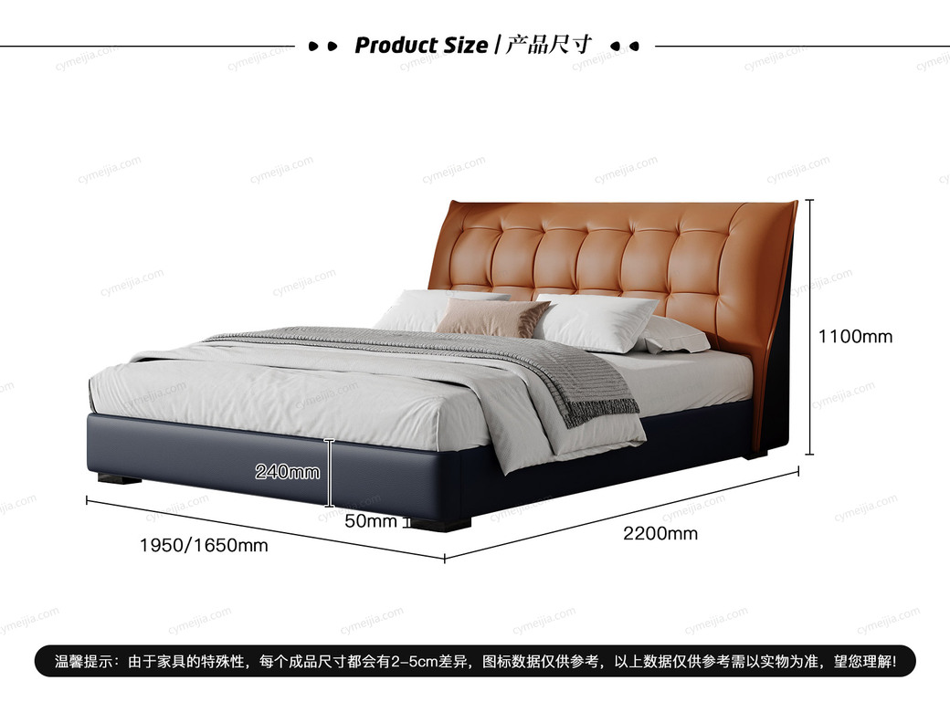 | 适配床垫 : | 长2000*宽1500*高220mm |