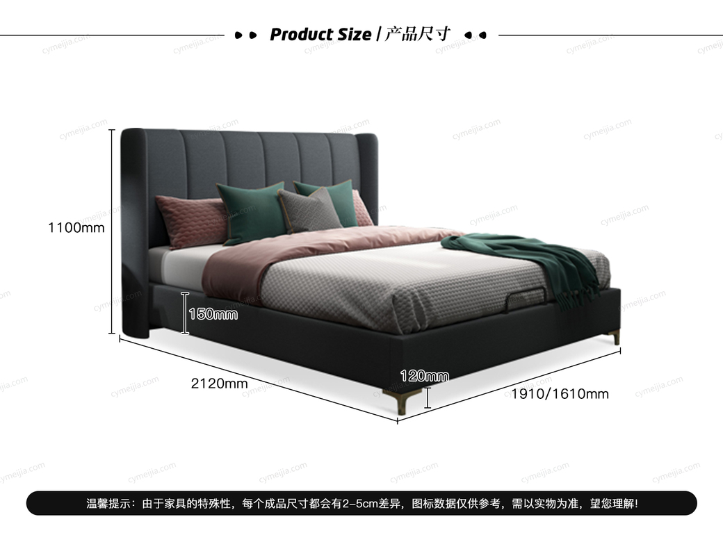 | 适配床垫 : | 长2000*宽1500*高220mm |