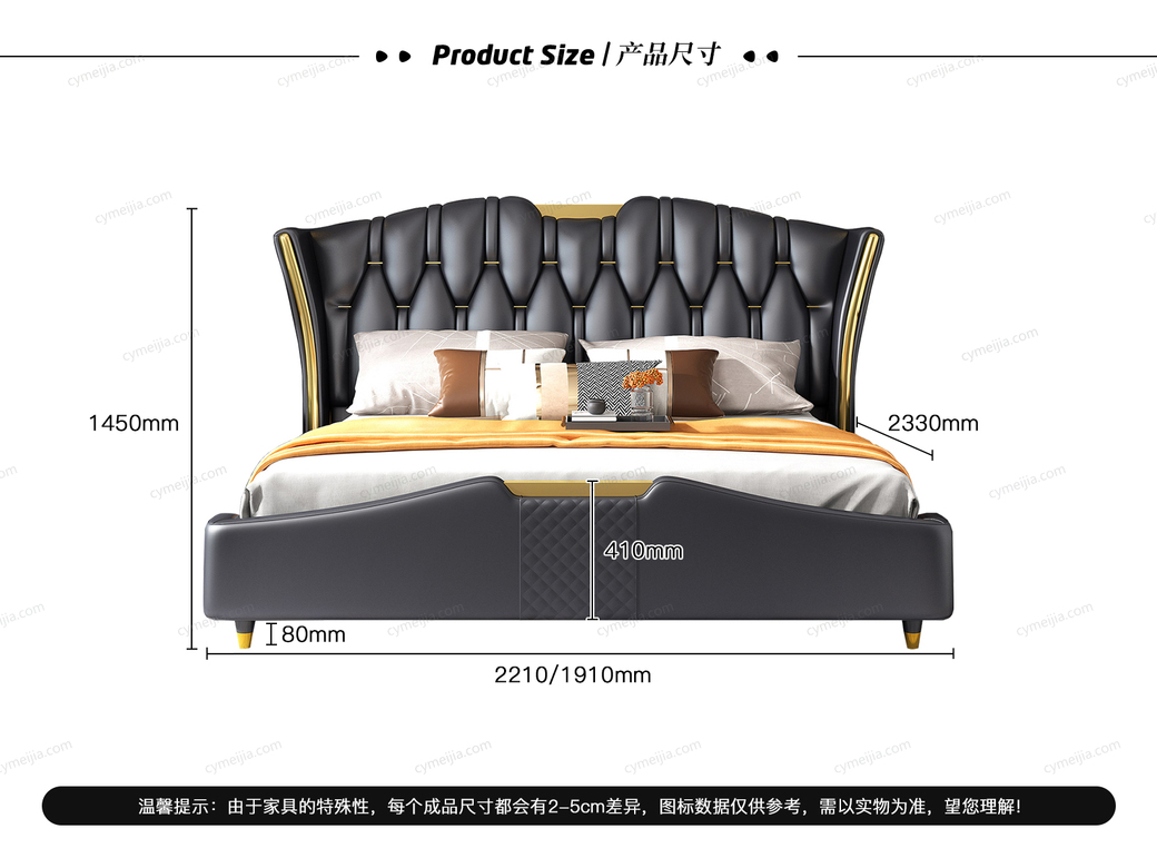 | 外径 : | 长2300*宽1910*高1450(床头下摆1660宽) |