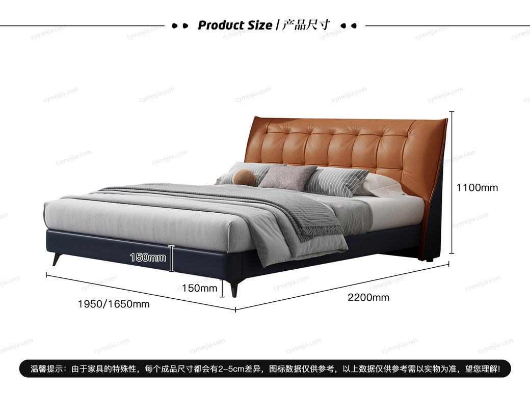 | 适配床垫 : | 长2000*宽1500*高220mm |