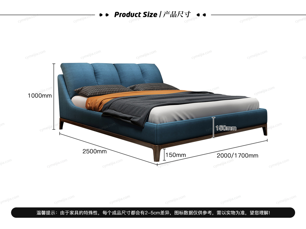 | 适配床垫 : | 长2000*宽1500*高220mm |