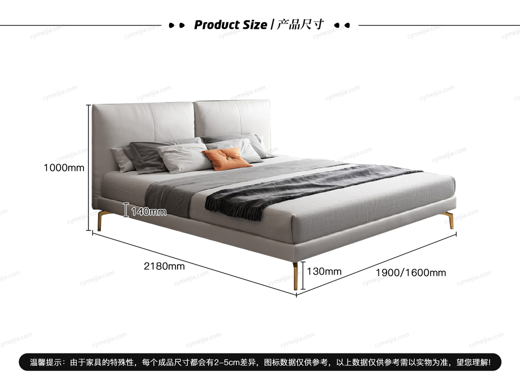| 适配床垫 : | 长2000*宽1800*高220mm |