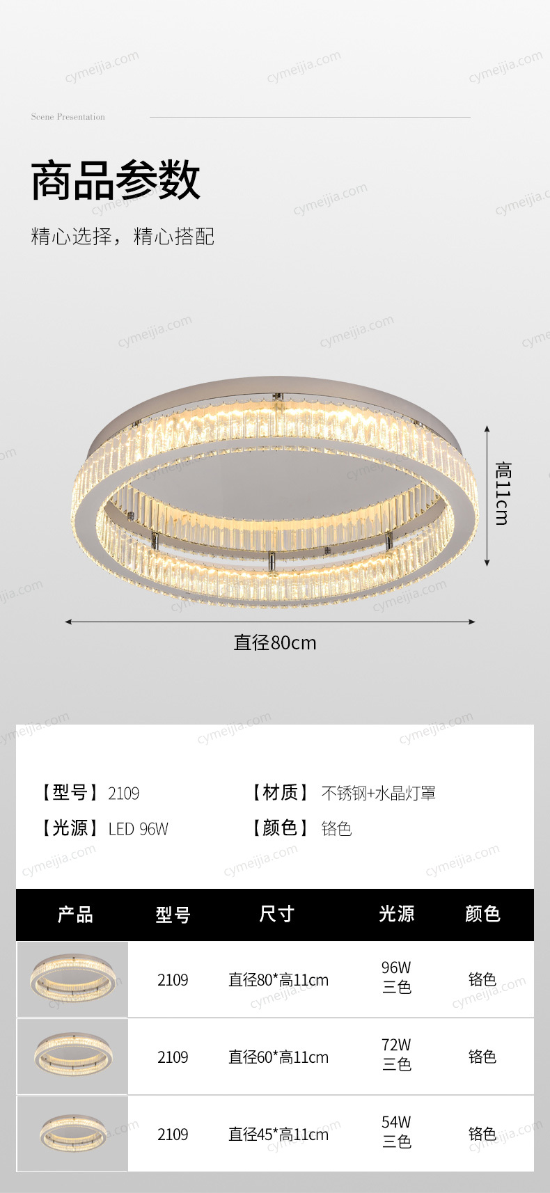 | 产品材质 : 不锈钢+水晶 | 产地 : 中山 | 光源类型 : LED-100W | |