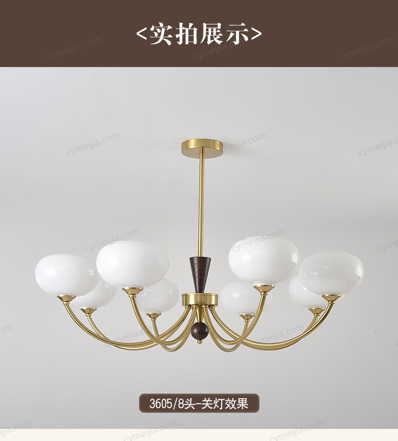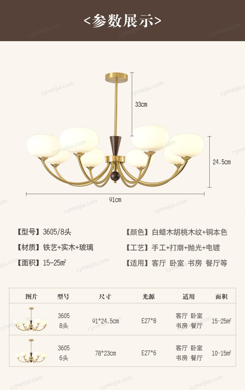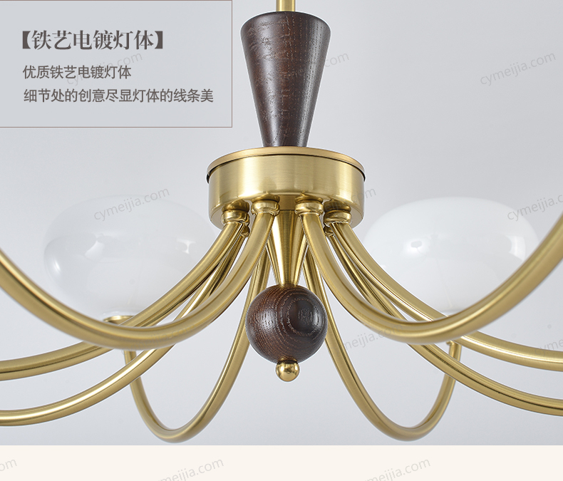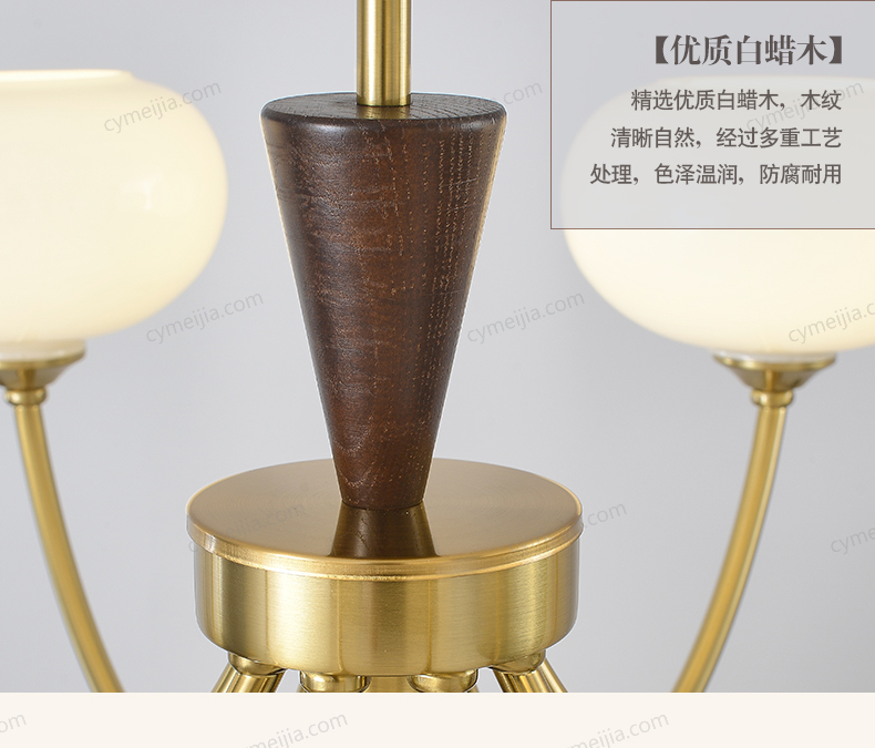 | 产品材质 : 实木+铁艺+玻璃 | 产地 : 中山 | 光源类型 : E14*6 | |