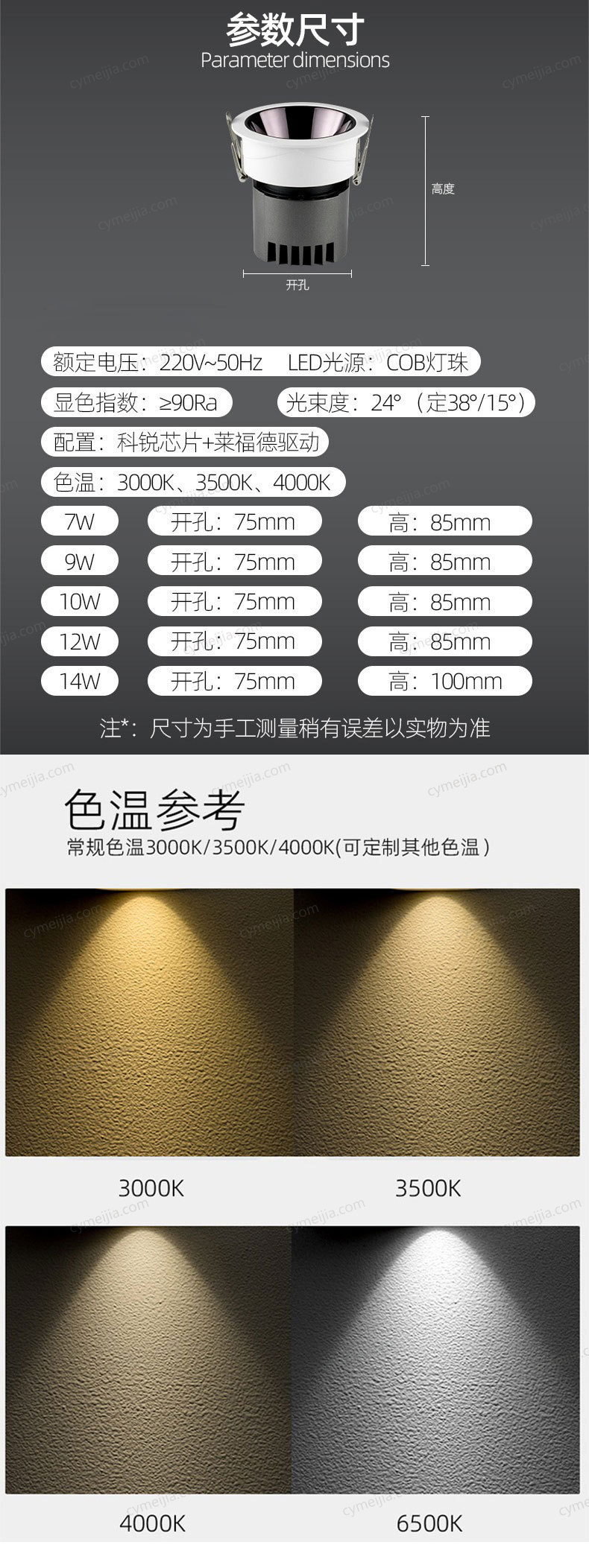 | 灯体尺寸 : | 面框直径85mm*高度85mm 开孔:75mm |