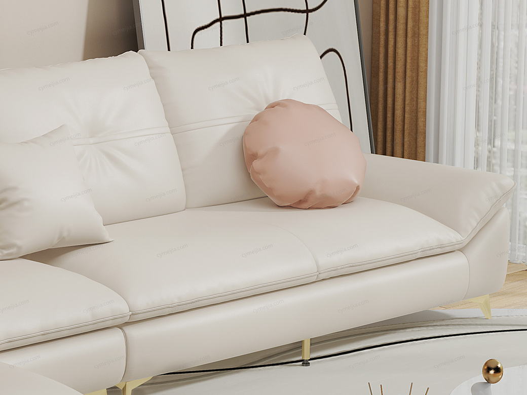 | 产品材质 : | 仿真皮+羽绒靠包+高密度海绵+四面刨光桉木方加松木方+进口4.0蛇形弹簧+加宽橡筋 |
