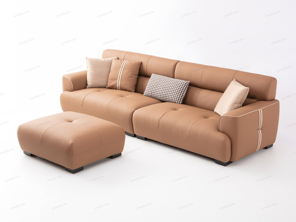 | 产品材质 : | 接触面进口头层黄牛皮+羽绒靠包+座包三明治结构高回弹海绵+澳大利亚进口桉木框架+实木脚 |