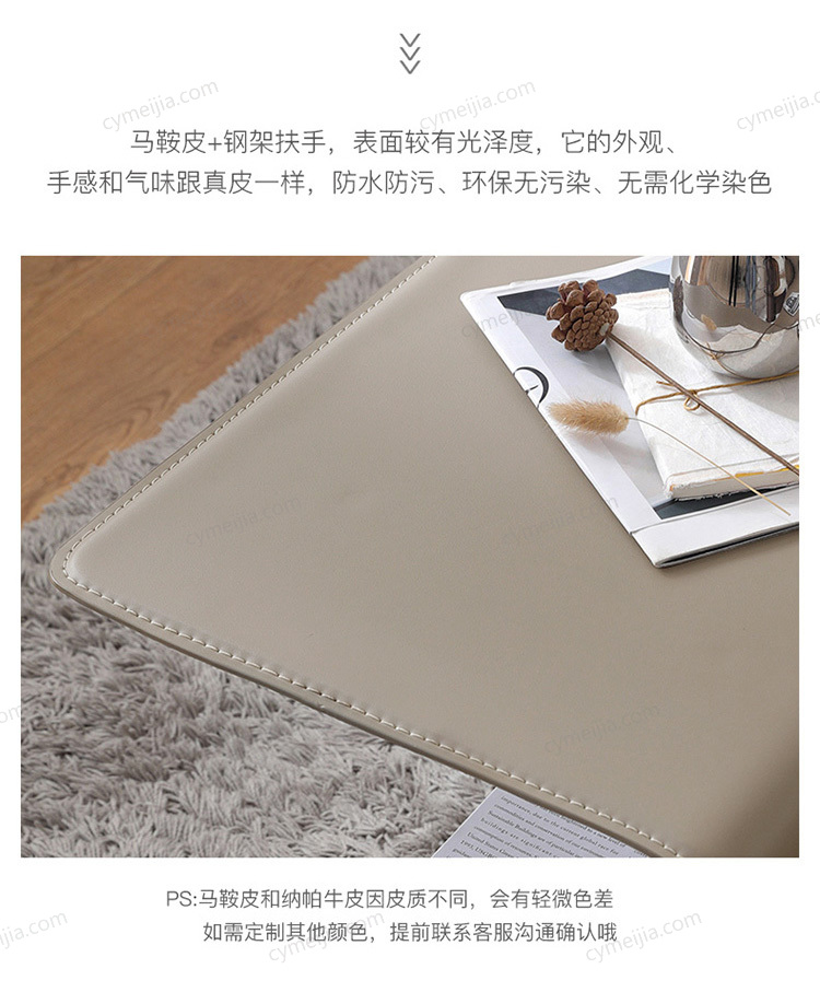 | 产品材质 : | 仿真皮+羽绒靠包+厚钢板+高密度高回弹海绵+落叶松实木框架 |