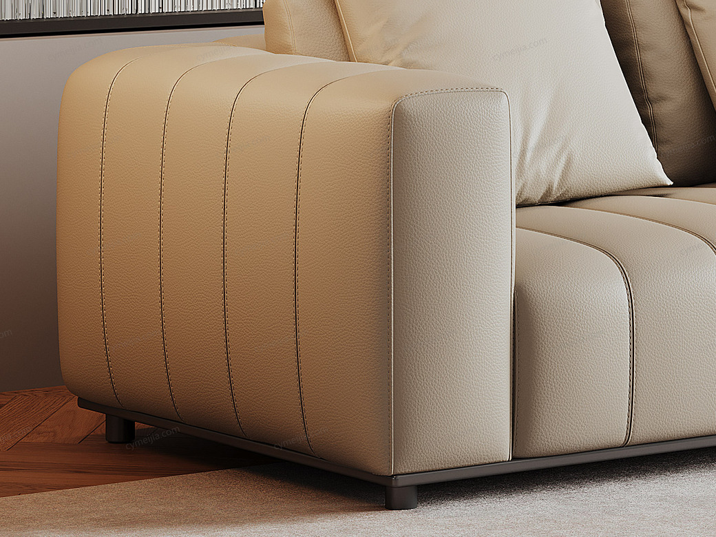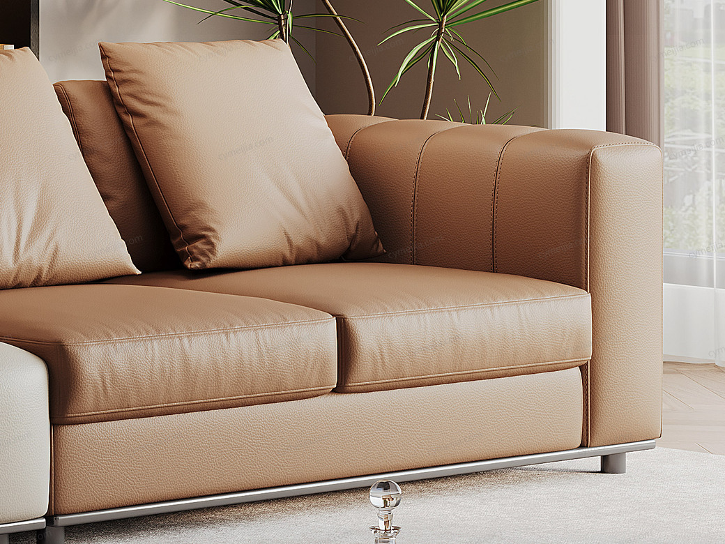 | 产品材质 : | 接触面进口头层黄牛皮+羽绒靠包+高密度海绵+俄罗斯落叶松实木框架+不锈钢底座 |