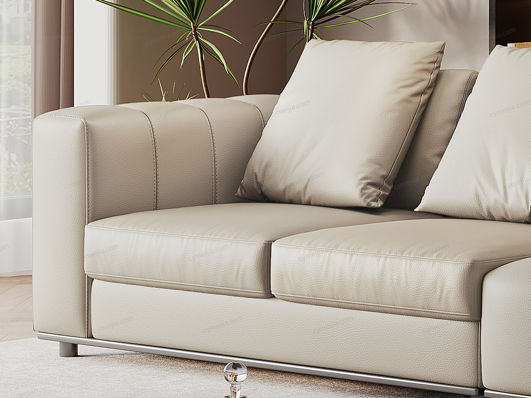 | 产品材质 : | 接触面进口头层黄牛皮+羽绒靠包+高密度海绵+俄罗斯落叶松实木框架+不锈钢底座 |