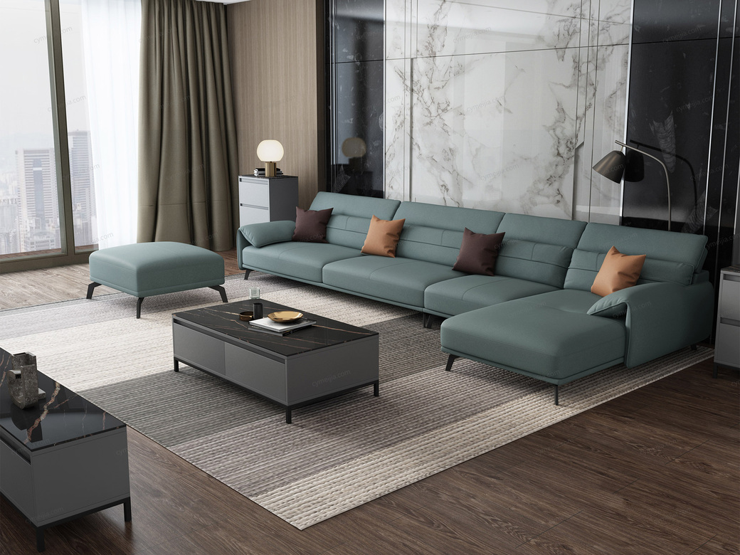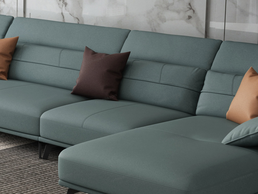 | 产品材质 : | 科技布+羽绒靠包/头枕/扶手+高密度海绵+俄罗斯落叶松实木框架+五金脚 |