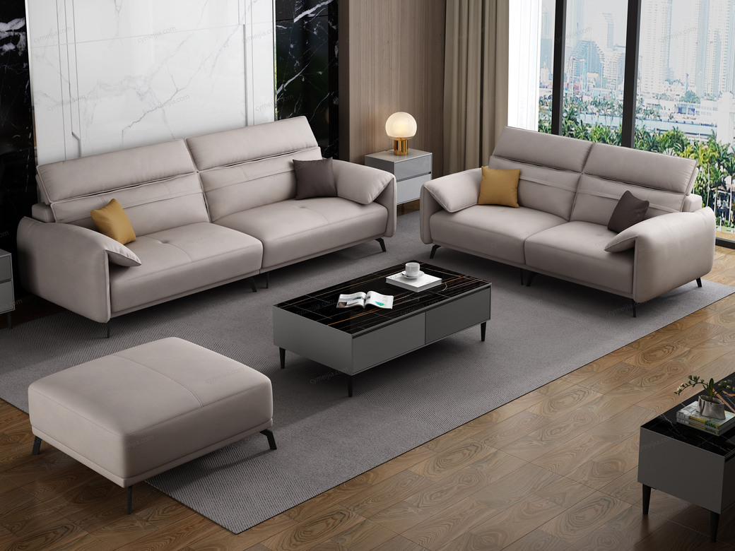 | 产品材质 : | 科技布+羽绒靠包扶手+高密度海绵+俄罗斯落叶松实木框架+五金脚 |