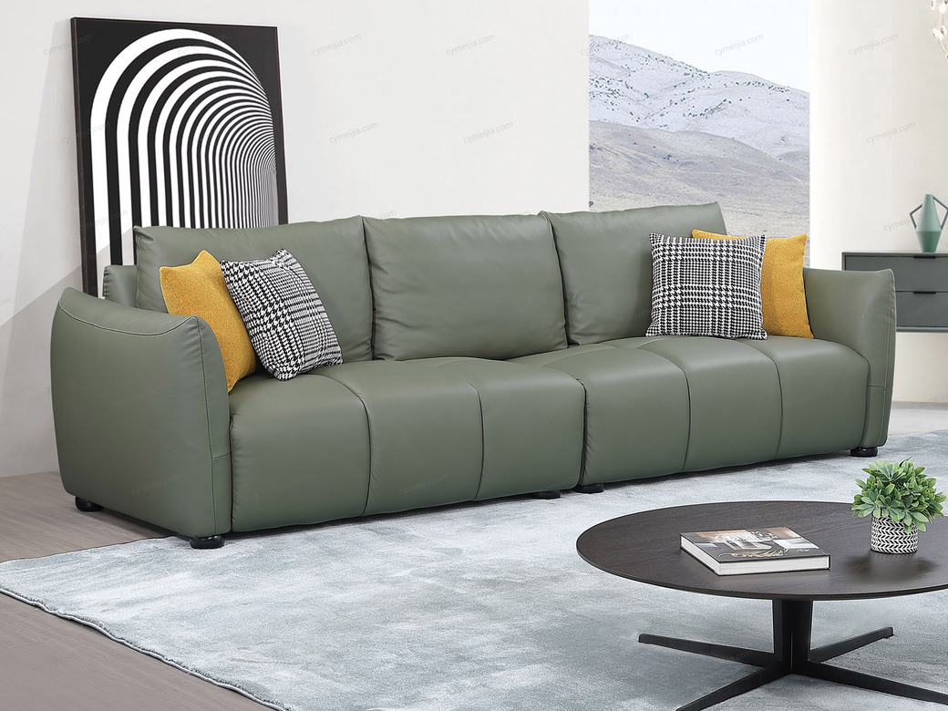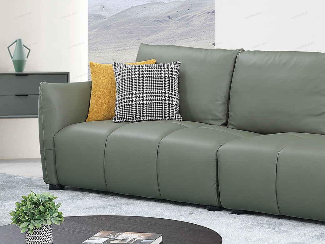 | 产品材质 : | 框架:进口俄罗斯落叶松+松木板结合,四面封板、结实牢固;海绵:座包由高密度海绵填充,回弹性好,坐感软硬适中;面料:接触面进口头层黄牛皮;靠包:由柔软的羽绒填充,柔软舒适。 |
