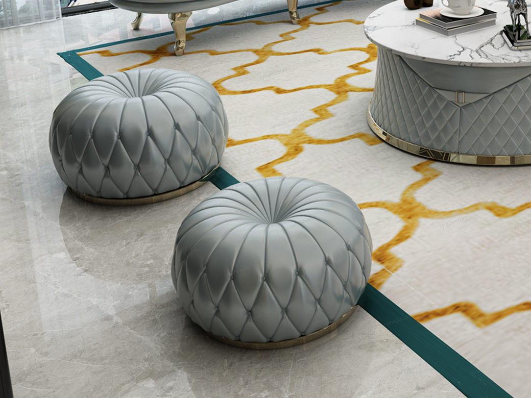 | 产品材质 : | 仿真皮+不锈钢镀金+俄罗斯进口松木框架+高密度海绵 |