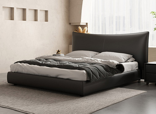 罗曼仕 极简风格 沙丘落地床 进口头层黄牛皮+高回弹海绵+实木框架+碳素钢脚 1.8*2.0米真皮床(搭配10公分松木排骨架)