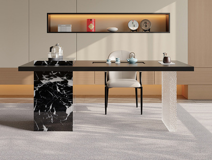 一方茶居 意式极简 黑木纹岩板台面 黑木纹岩板+百达翡丽包裹储物柜 黑色渐变亚克力脚架 全自动智能隐藏式茶艺炉 2.4米茶台(超大件商品,请确认能否进入电梯或楼道)