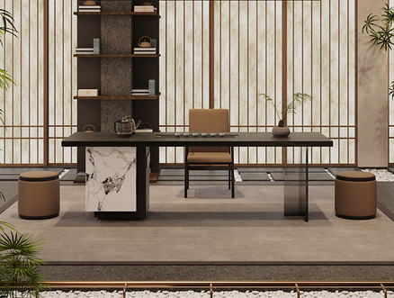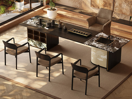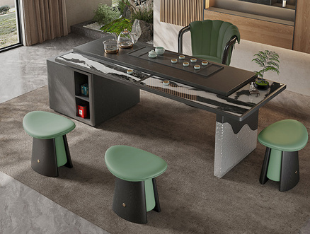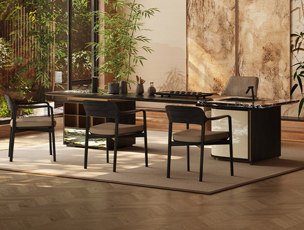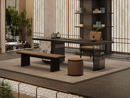 檀影轩 新中式 纹理天成 手抚如玉 高端进口黑檀木 温润柔滑岩板 桌面精细分区 镂空桌腿大容量储物 1.8米 茶桌