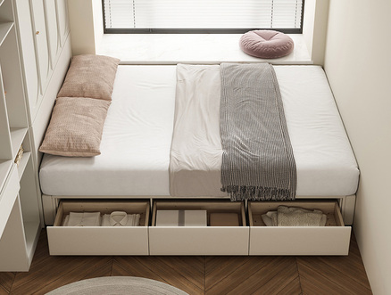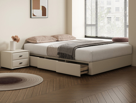 歌迪 极简风格 榻榻米终结者 全实木结构 无床头更省空间 摆放方向无局限 侧边三抽屉储物设计 四边柔软包裹预防磕碰 齐边落地设计 无床头抽屉款1.5*2.0米床(搭配10公分松木排骨架)(抽屉不分左右)