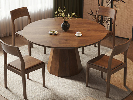 忆宋风华 宋式美学 九州实木圆桌 高品级北美进口白蜡木 细腻柔滑岩板转盘 精致修饰线条工艺桌腿 胡桃色 1.35米 餐桌(含转盘)