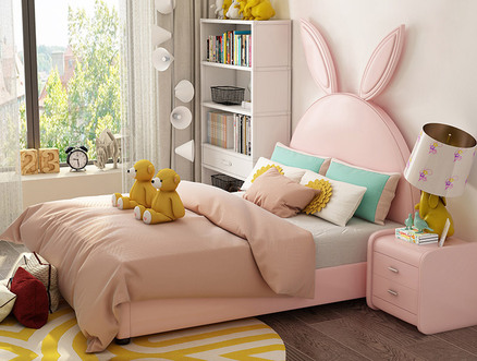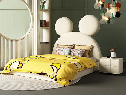 梵克美家 轻奢风格 柔软亲肤 米黄色 布艺 米老鼠床头C款1.5*2.0米儿童床(升级10公分松木排骨架 图片为真皮款,此配置为麻布款)