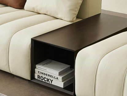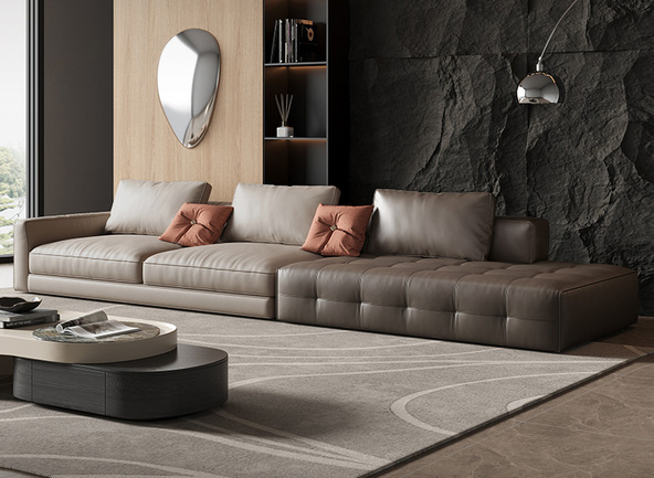 罗曼仕 极简风格 钢琴键真皮沙发 质地柔软 耐折耐磨 高定头层黄牛皮 天然蓬松羽绒靠包填充 高密度回弹海绵 结实耐用实木框架 组合沙发 直排五人位+右贵妃