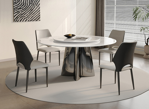 诺美帝斯 极简风格 大理石台面 质感细腻 进口白蜡木 古朴典雅 稳固承重 1.3米 圆餐台(含转盘)