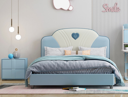 帕帕猫 简美风格 科技皮+硅胶皮+松木框架 环保健康 儿童床 蓝色 1.5*2.0米(搭配松木静音床板)