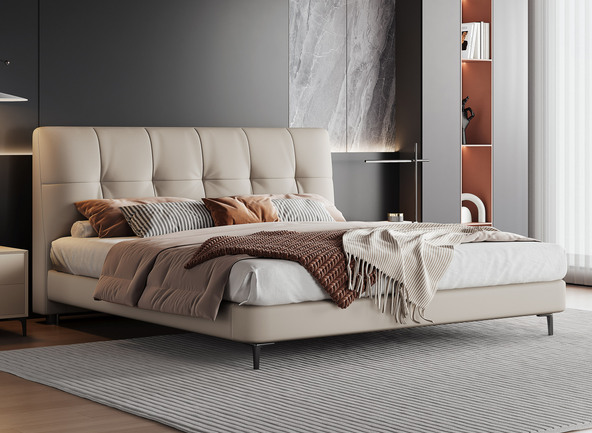 巴克洛 轻奢风格 至臻头层黄牛皮+实木框架+高密度海绵+五金脚 1.8*2.0米 卧室真皮床 (搭配排骨架)