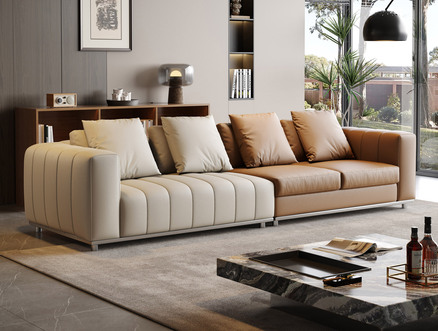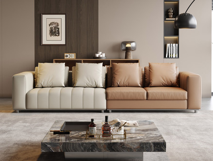欧瑞仕 意式极简 劳伦斯拼色真皮沙发