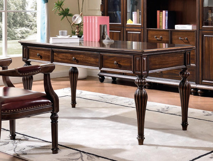 菲利克斯 经典美式风格 高品级南美进口黑胡桃木 纹理细致色泽温润 经典复古罗马柱造型 方正宽大桌面 1.6米 书桌