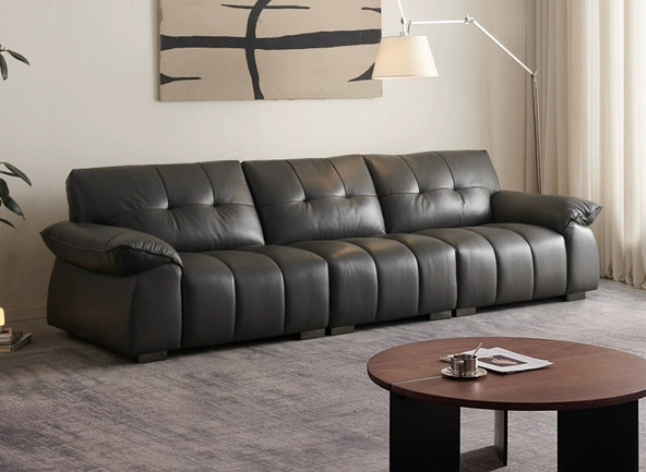 欧瑞仕 意式极简 莫扎特真皮沙发 进口头层黄牛皮 豪奢大面积坐前真皮 整体覆盖无切割 蓬松饱满羽绒靠包扶手 人体工学倾角搭靠惬意舒展 松软回弹大坐包 四人位沙发