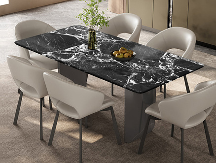 慕梵希 轻奢风格 防刮耐磨 亮光雪山石马肚型岩板+不锈钢+碳素钢 1.6米餐桌