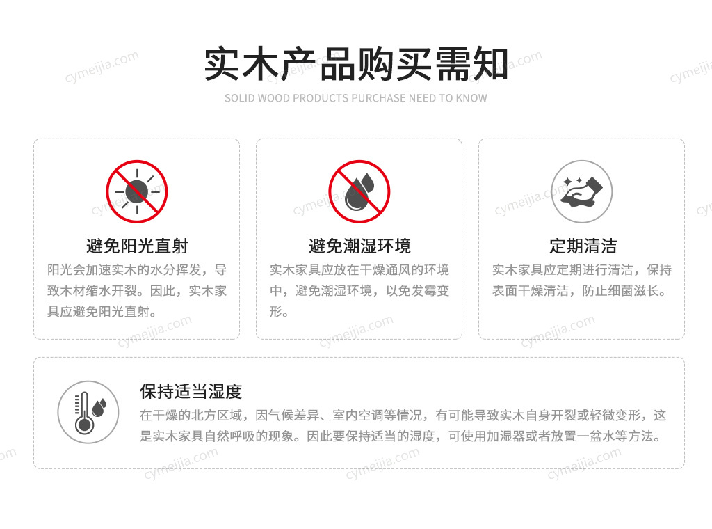 | 保养说明 : | 避免阳光长时间直射,以免造成产品局部褪色或泛黄,并保持使用环境清洁、干燥、通风,以免受潮。 |
