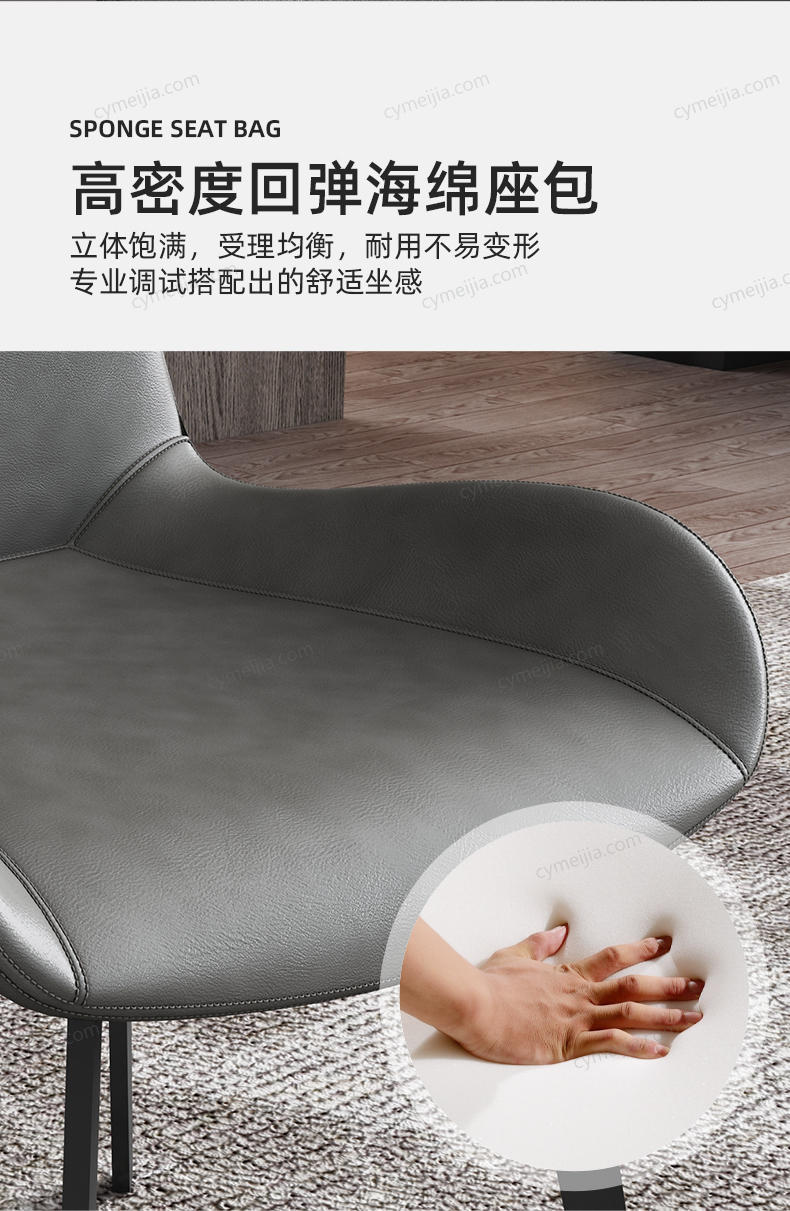 | 产品材质 : | 高品质磨砂皮+碳素钢椅脚 |