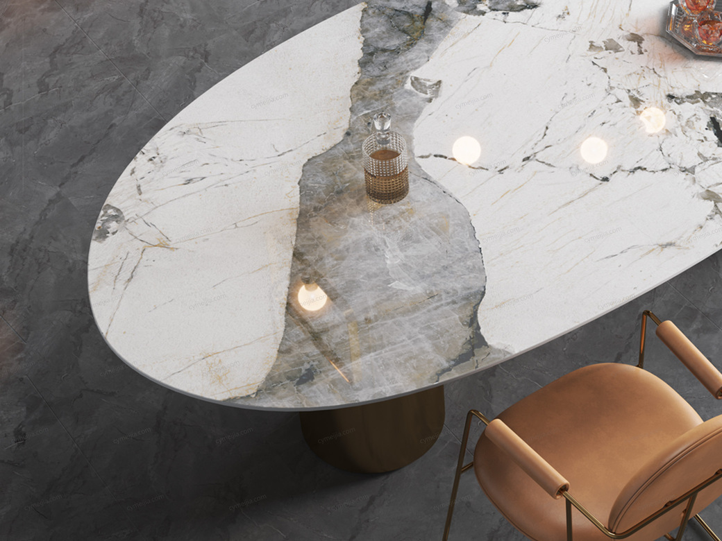 | 产品材质 : | 潘多拉亮光岩板+不锈钢钛金底架 |