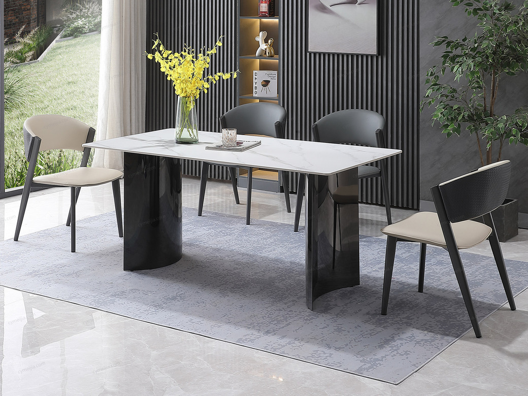 | 产品材质 : | 不锈钢黑钛亮光台脚+哑光雪山石岩板面 |