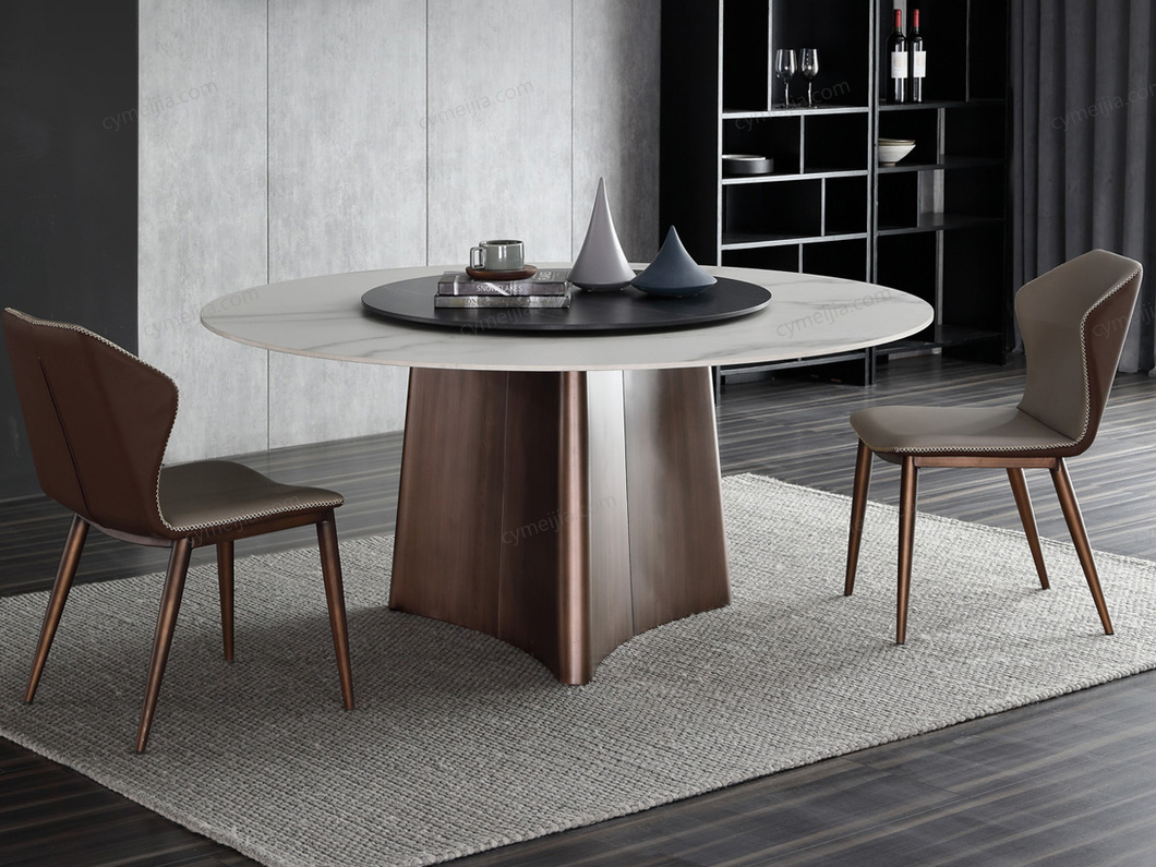 | 产地 : 佛山 | 规格 : 直径1350*高800mm(转盘直径800mm) | 产品材质 : 碳素钢架拉丝古铜色+维克灰哑光岩板面 | 更多参数>> |