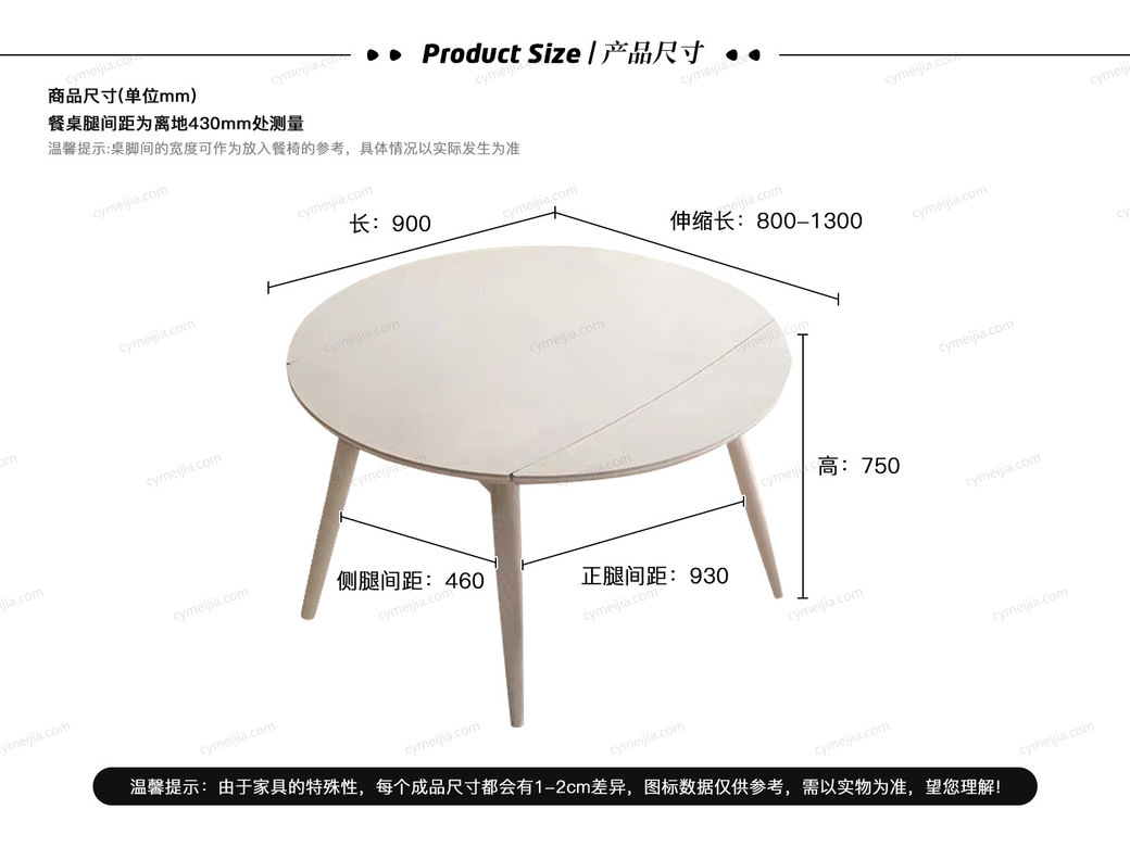 | 规格 : | 伸展前:长1300*宽800*高750mm;伸展后:直径1300*高750mm |