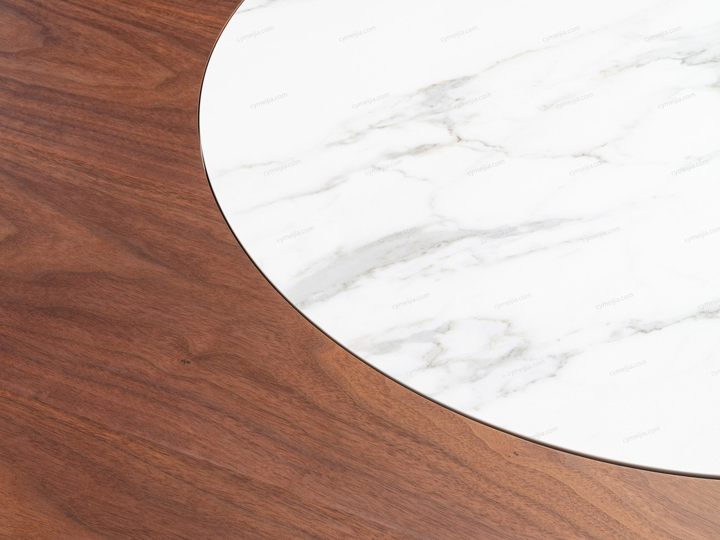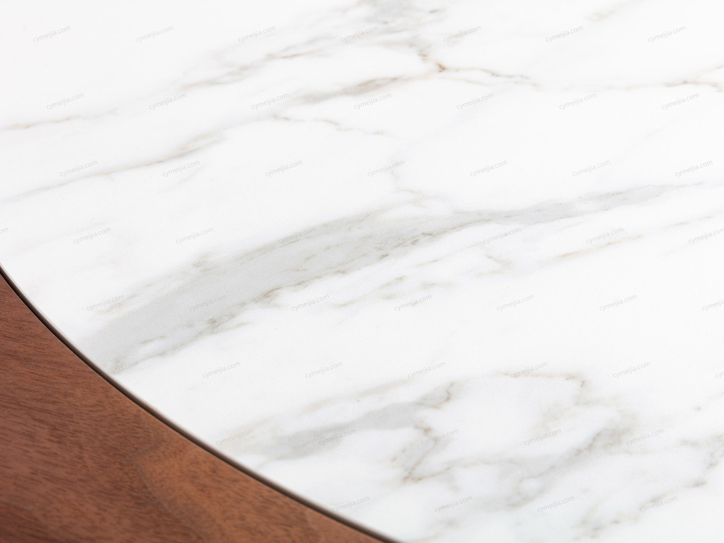 | 产品材质 : | 卡拉拉白哑光岩板+泰国进口橡胶木+E1级高密度板(胡桃木皮) |