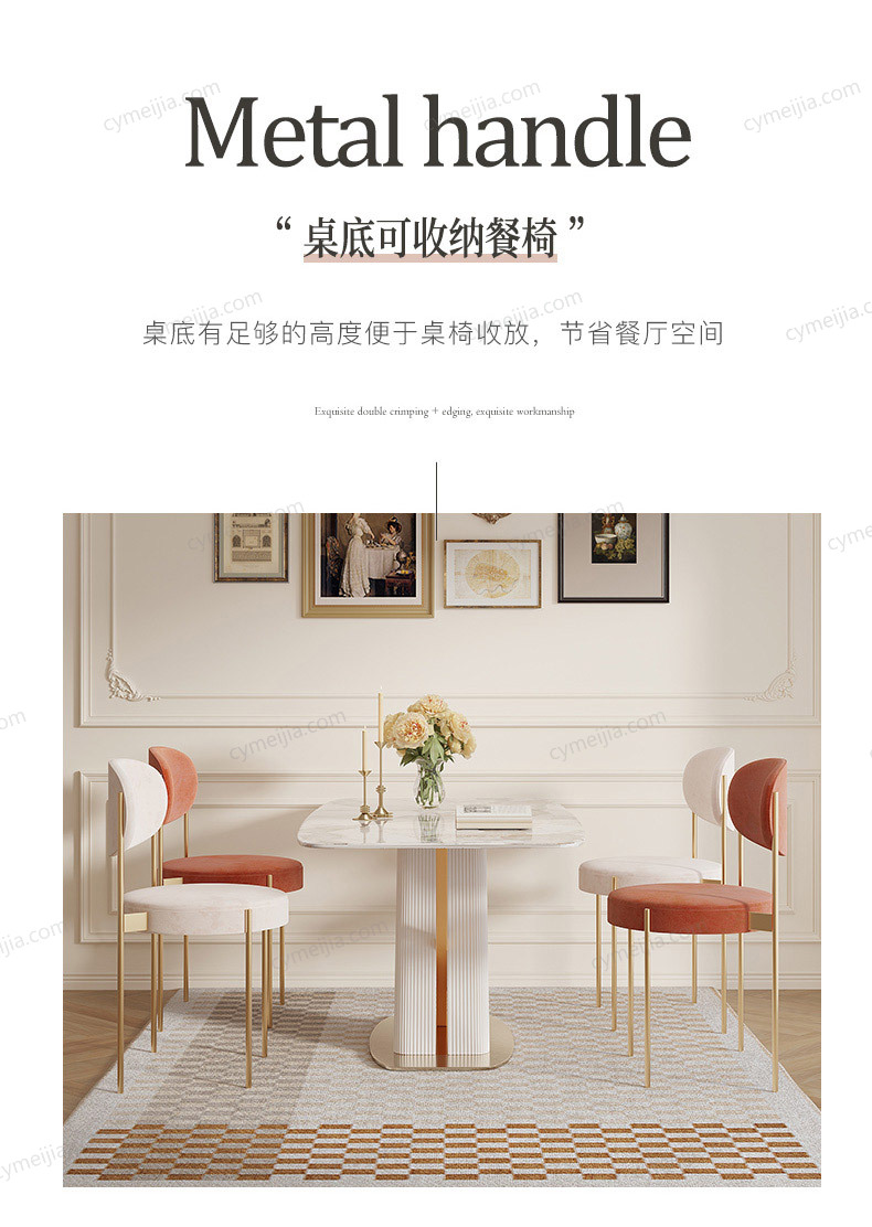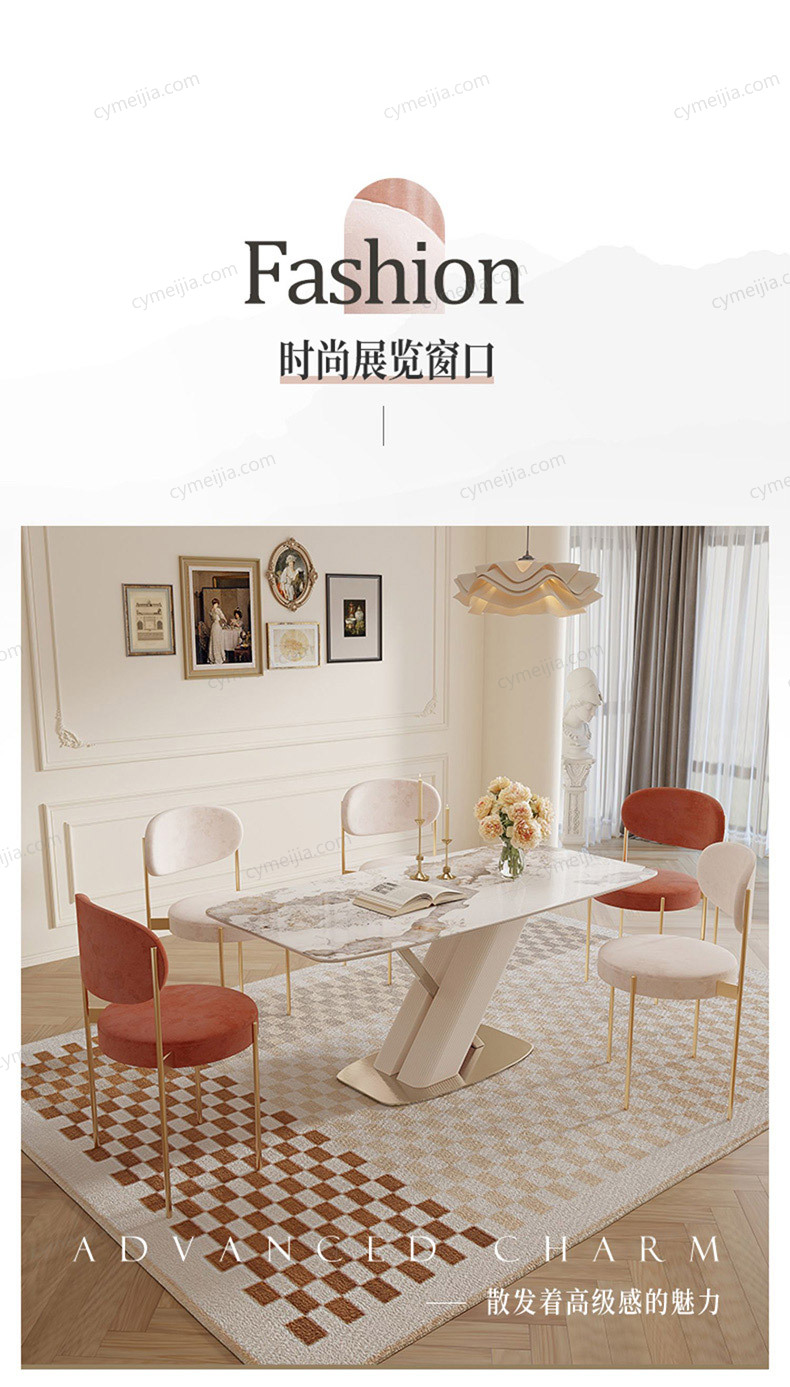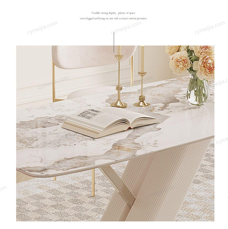 | 产品材质 : | 潘多拉亮光岩板面+不锈钢拉丝香槟金色+高密度板烤漆奶白色+复合木底板 |