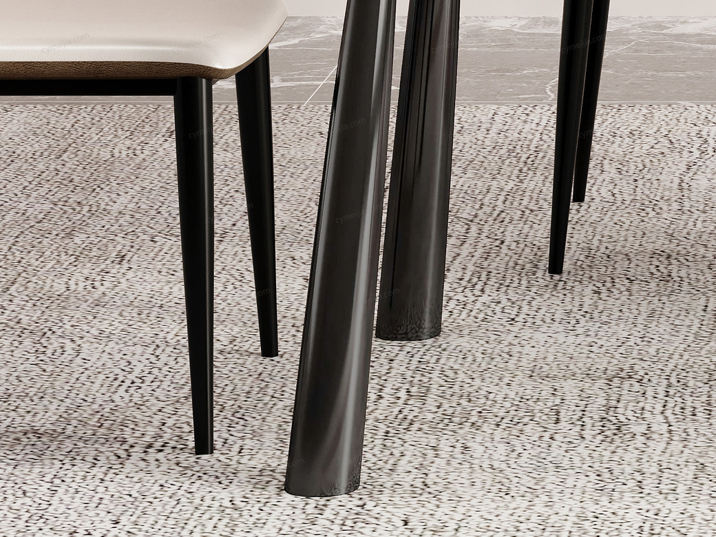 ◕ 碳钢微倾八字桌腿设计,以低重心粗壮支撑确保强劲稳固,同时创造宽敞桌下空间,实现力学平衡与收纳自如的统一。