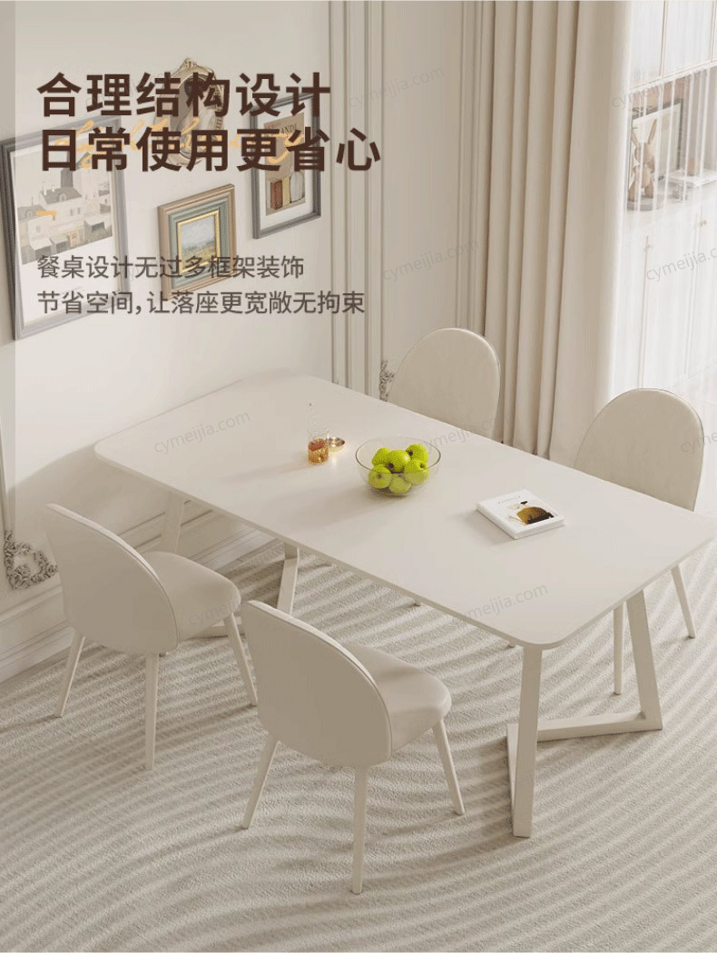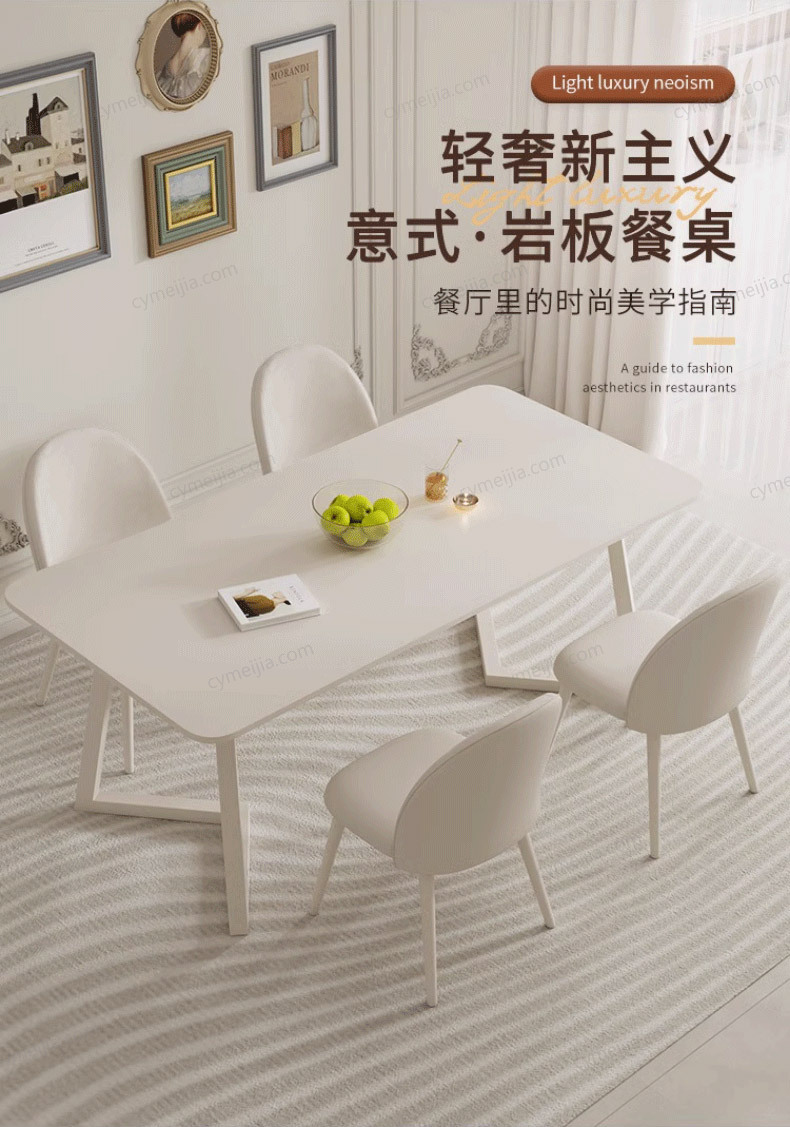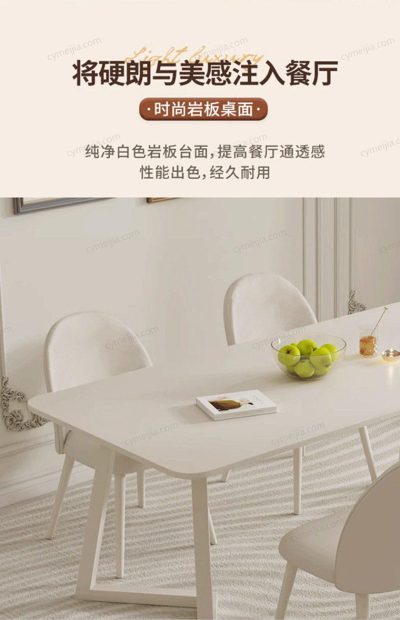 | 产品材质 : | 哑光纯白岩板+厚实碳素钢底架++复合木底板 |