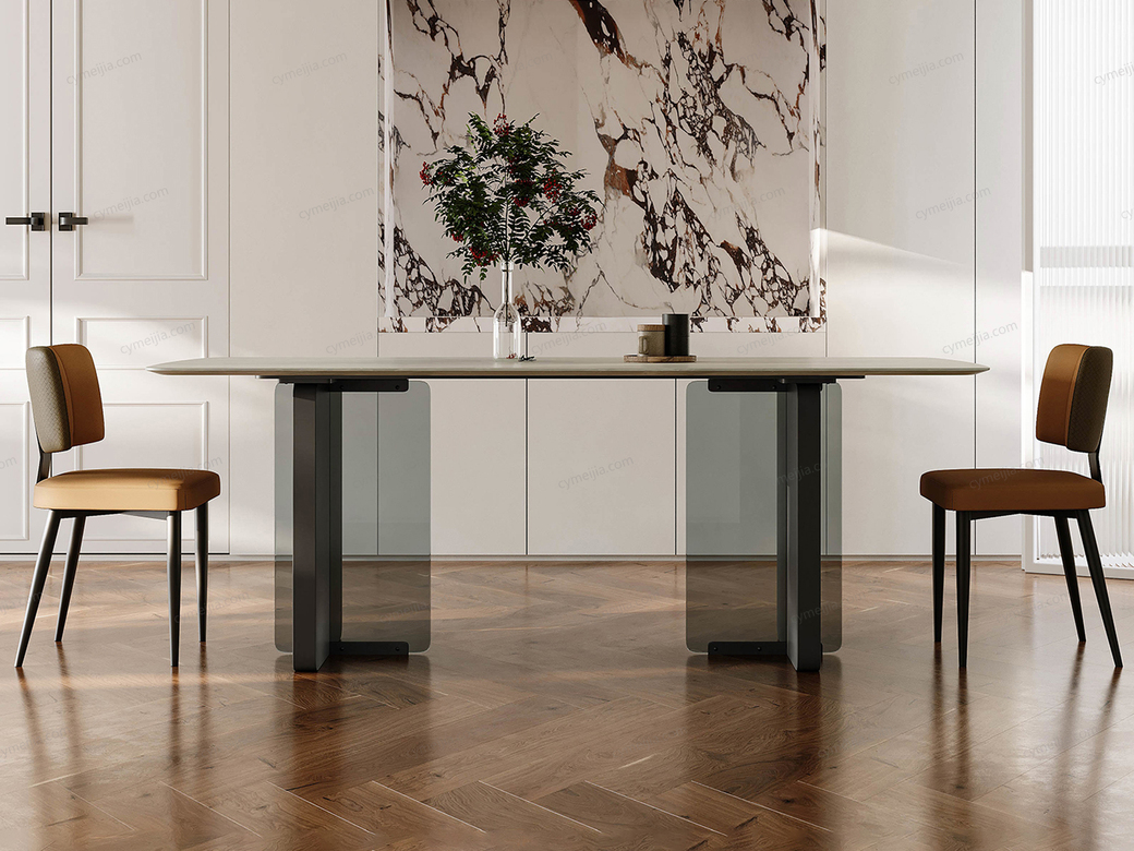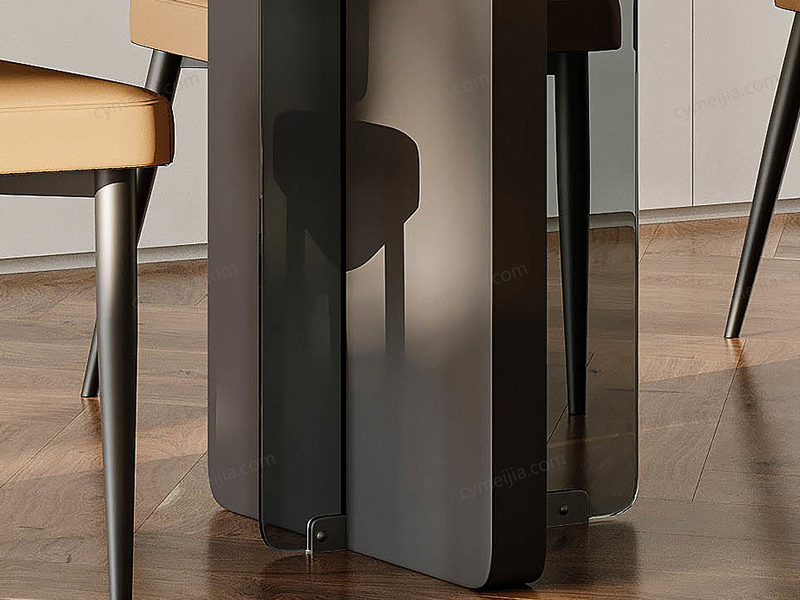☀ 钢化玻璃与不锈钢构筑悬浮底座,视觉轻盈通透,打破空间压抑感,让餐区更显开阔明朗。