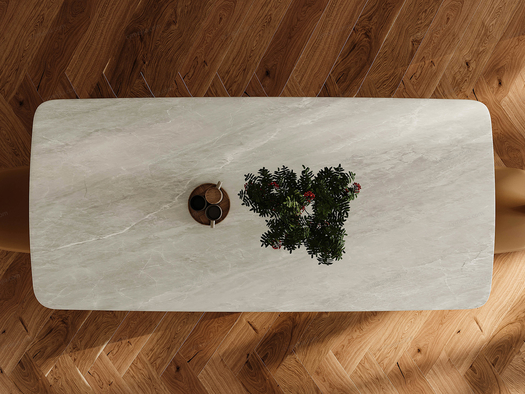 ☀ 岩板台面触感温润细腻,搭配圆润弧形倒角,于简约中注入贴心守护,美观与安全并存。