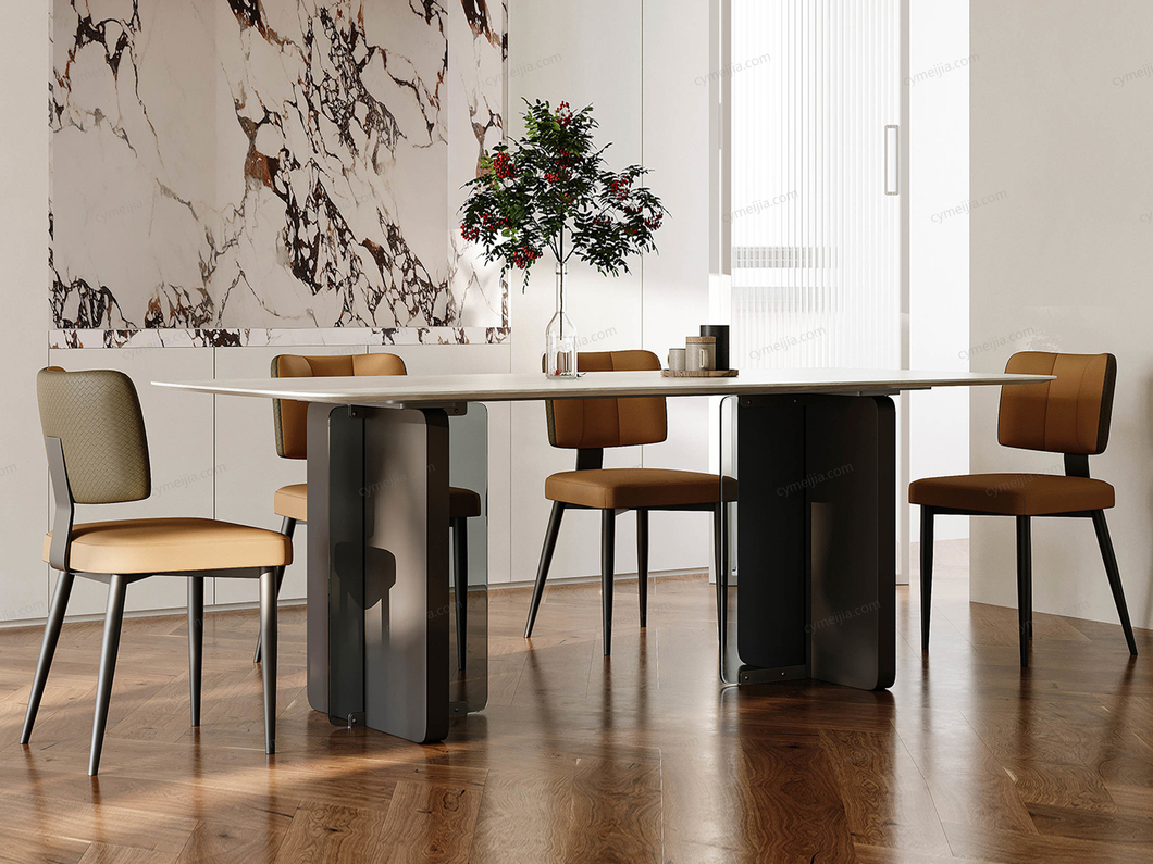 ◕ 不锈钢底架展现纯净质感,优异的耐蚀与强韧特性,赋予餐桌轻盈而稳固的极简形态。
